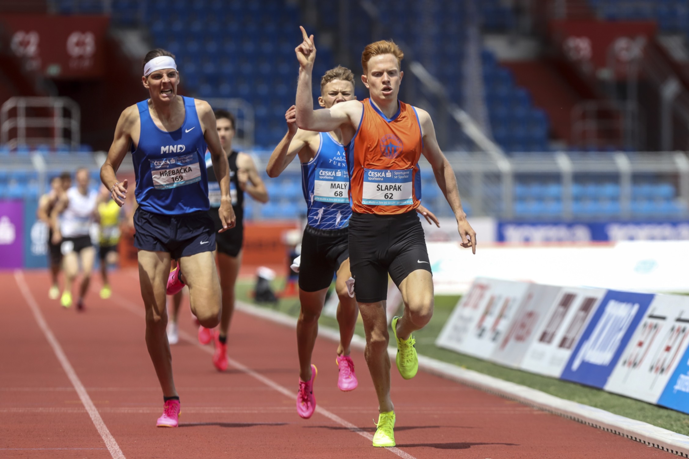 Sérii MČR zakončil souboj o republikové tituly pro závodníky do 22 let v Ostravě. Podle očekávání byly naše barvy nejvíce vidět díky Davidu Šlapákovi, který ovládl taktický běh na 1500 metrů. Ačkoliv mu tento styl závodění není nejbližší a jak sám říká, "není žádný rychlík", tak si zkušeně pohlídal finiš a v čase 3:57,29 slavil už osmý republikový titul. Kromě toho musíme ocenit také skvělé čtvrté místo Kuby Peterky na steeplu. Kuba se statečně popral s o něco starším startovním polem a do cíle doběhl v novém osobáku 9:19,75. Sobotní postup do finále si na dlouhých překážkách zkušeně pohlídala Majda Šlapáková, druhý den se jí už tolik nepovedl, ale 6. místo na MČR se rozhodně počítá.