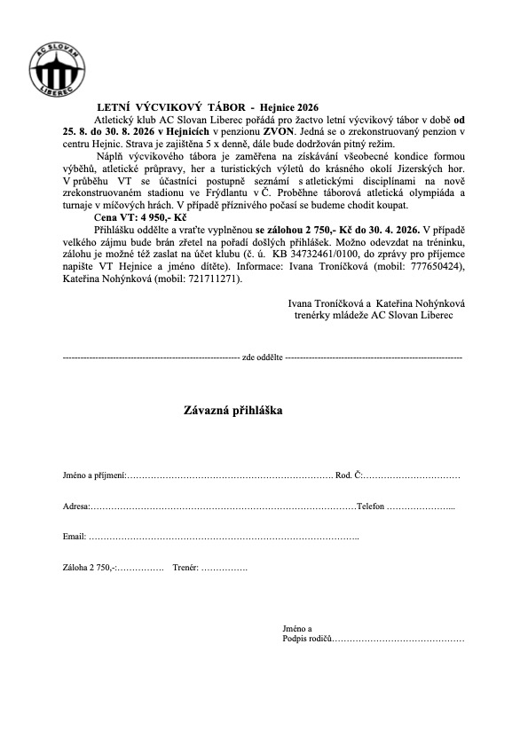 Přihláška na VT Hejnice 2026