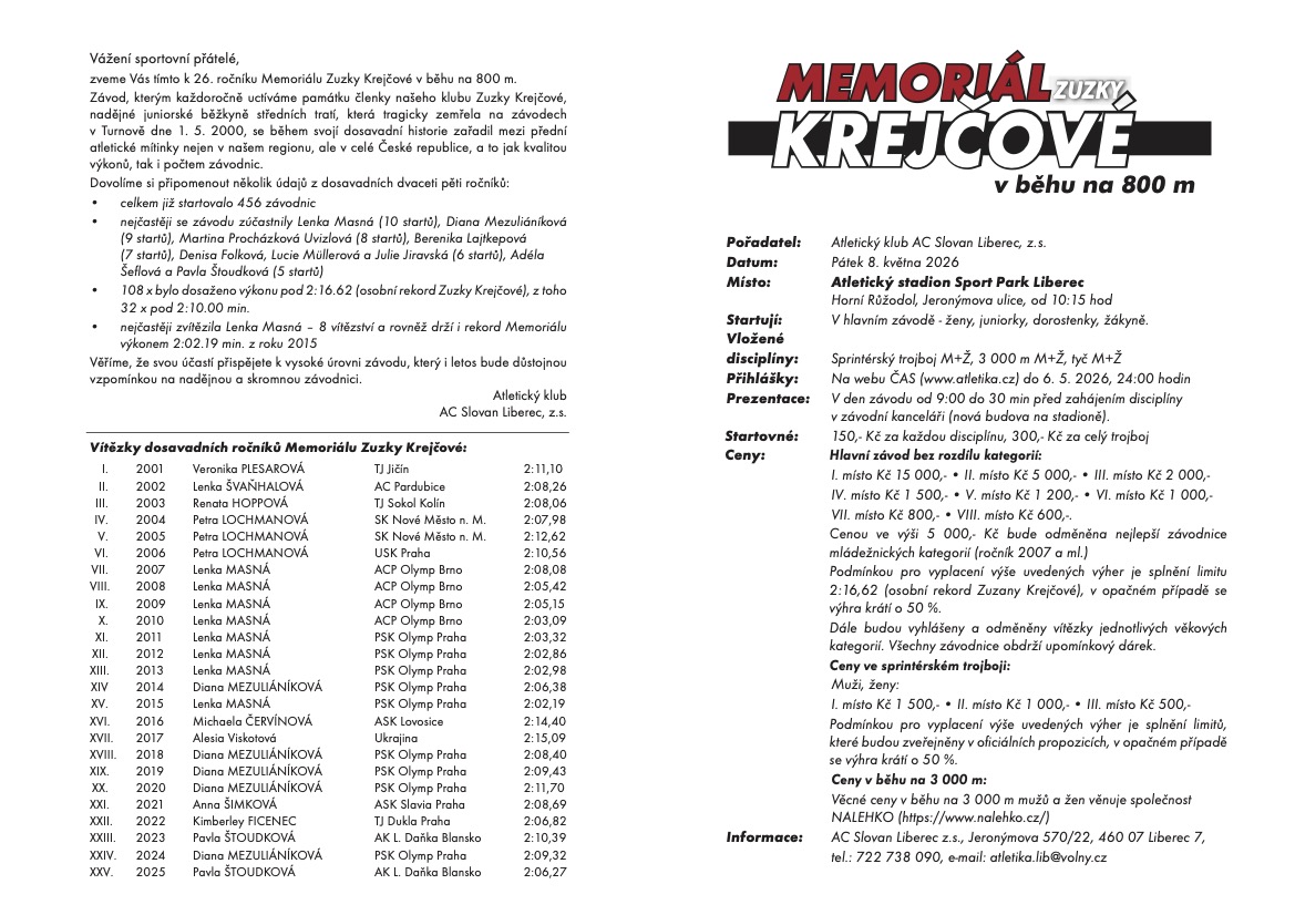 Opět nás čeká tradiční Memoriál Zuzany Krejčové!